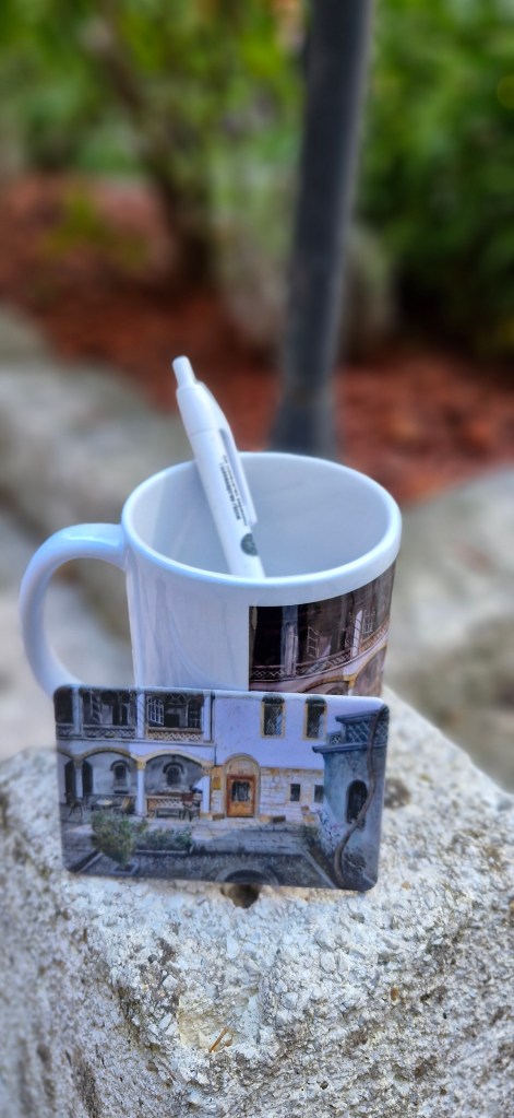 Na suvenirima se nalazi umjetničko djelo koje prikazuje zgradu našeg Muzeja, koja je nacionalni spomenik BiH. Autor ovog ulja na platnu je Irfan Hozo, kojem smo veoma zahvalni jer nam je ustupio autorska prava. Prema postojećim podacima, kuća u kojoj se od 1961. godine nalazi Muzej književnosti i pozorišne umjetnosti Bosne i Hercegovine datira iz sredine 19. vijeka. Kuća je bila u vlasništvu porodice Skarić, a kasnije porodice Despić.